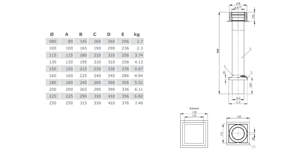 | Materialstärke (Schornstein) (mm) | 0,6 |