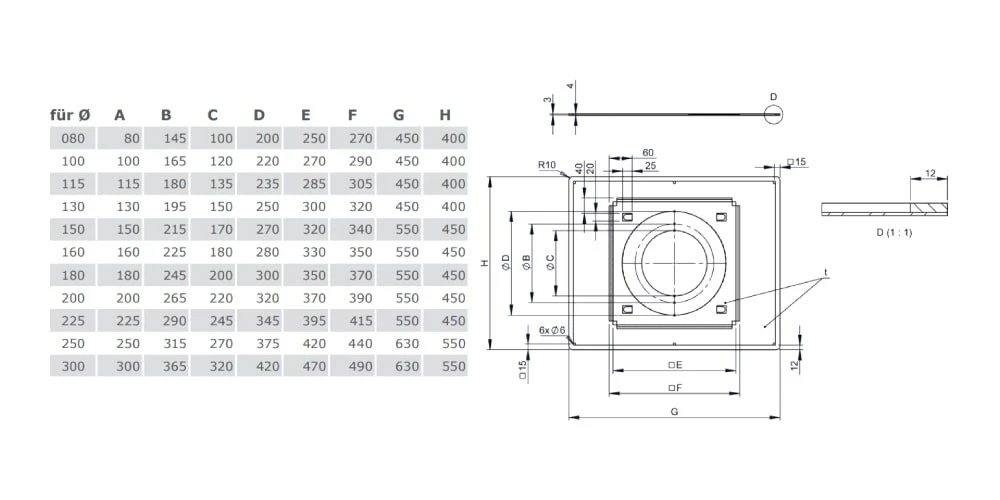 Deckenblende mit Dichtung für Dampfsperrenanbindung für Schornsteine.