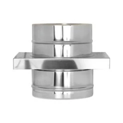 Wenn der Edelstahlschornstein einen Knick macht, muss oft eine Grundplatte für Zwischenstütze gesetzt werden. Damit erhöht man die Stabilität des Aufbaus und der Schornstein ist statisch bestimmt.