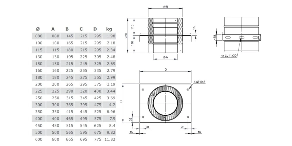 1 x Grundplatte für Zwischenstütze – doppelwandig – DW-FU
