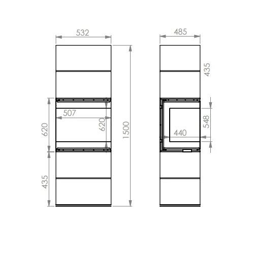 Der Ofen ist 1650 mm hoch, 535 mm breit und 485 mm tief, was eine einfache Integration in fast jeden Raum ermöglicht. Keine spezielle Installation oder zusätzliche Belüftung erforderlich.