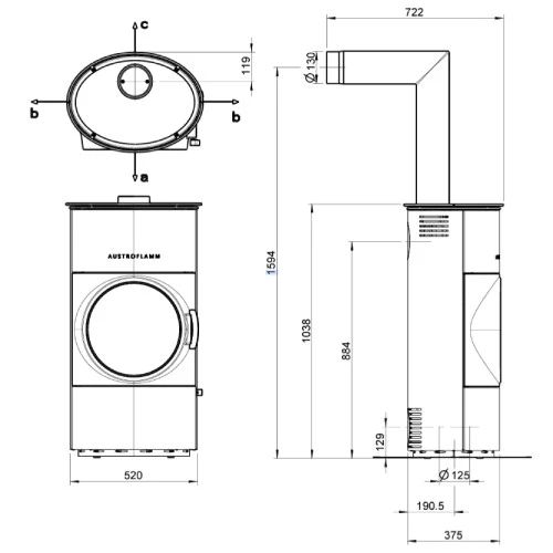 1 x Kaminofen Austroflamm Clou compact Cook 6 kW