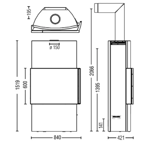 – Maße Grundgerät: 1519 x 840 x 421 mm (Höhe x Breite x Tiefe)