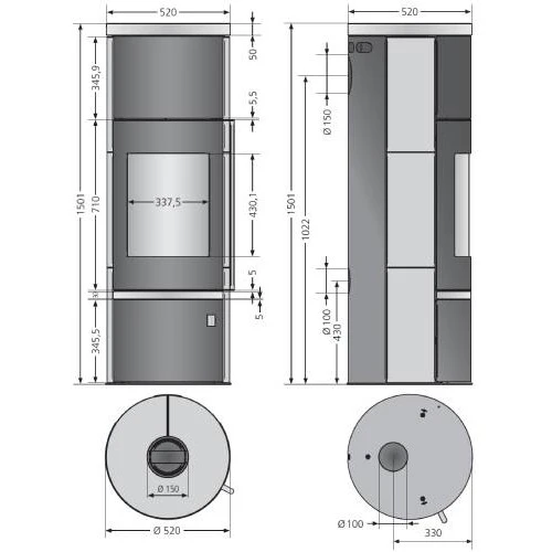 Im Gegensatz zum Schwestermodell Justus Faro ist die Wärmeplus-Variante konstruktionsbedingt noch einmal fast 35 cm höher – dem massiven Speichermasse-Modul im Ofeninneren sei Dank. Zusammen mit dem Edelstahlring unter der Feuertür gibt die gestreckte, 150 cm hohe Kaminsäule des Justus Faro W+ 2.0 ein exquisites Gesamtbild ab.