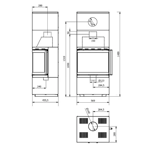 Der Anschluss für externe Zuluft mit einem Innendurchmesser von 123 mm garantiert eine effiziente und kraftvolle Verbrennung. Zusätzlich erleichtert die Möglichkeit, das Rauchrohr von oben oder hinten anzubringen, den Aufbau enorm und bietet Flexibilität bei der Platzierung im Raum.