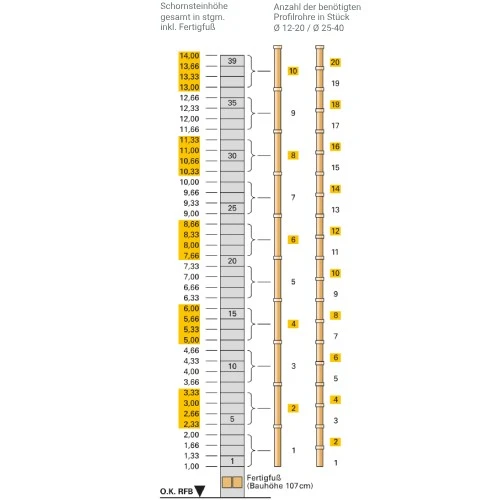 - Profilrohre und Mantelsteine je nach gewählter Schornsteinhöhe