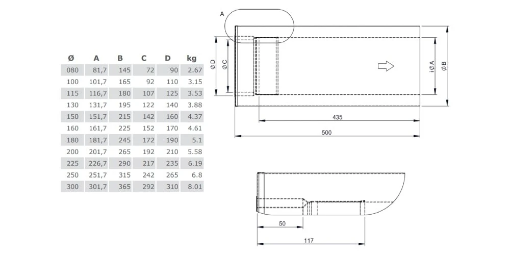 | Materialstärke (Schornstein) (mm) | 0,6 |