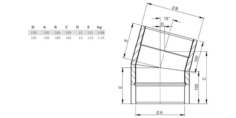 1 x Winkel 15° ohne Tür für Ofenrohr Iso-Line von Jeremias