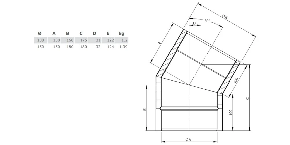 1 x Winkel 30° ohne Tür für Ofenrohr Iso-Line von Jeremias