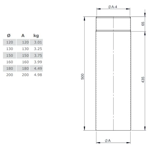 1 x Längenelement 500 mm für Ofenrohr Ferro-Lux von Jeremias