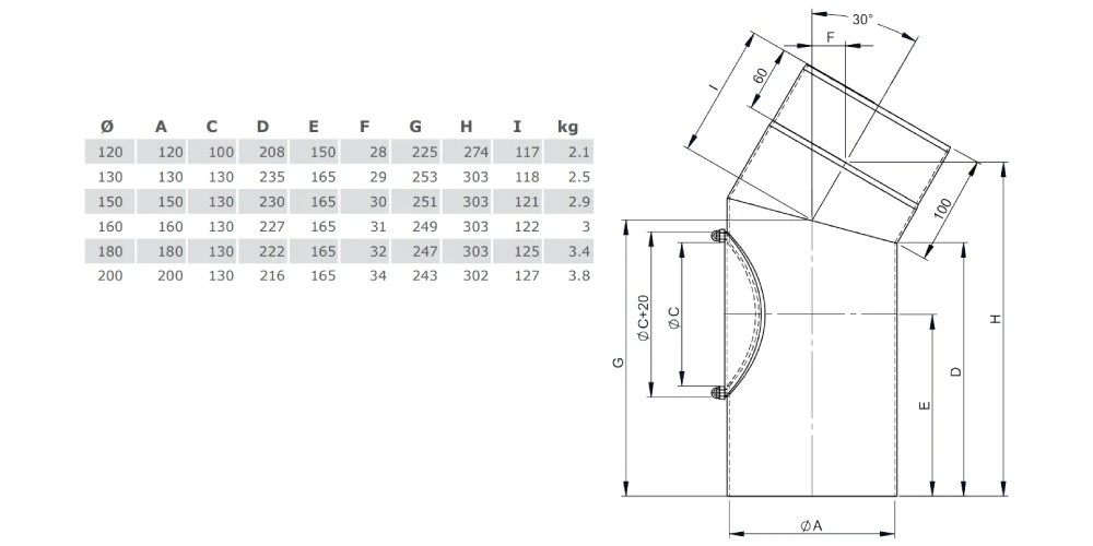 1 x Winkel 30° mit Tür für Ofenrohr Ferro-Lux von Jeremias