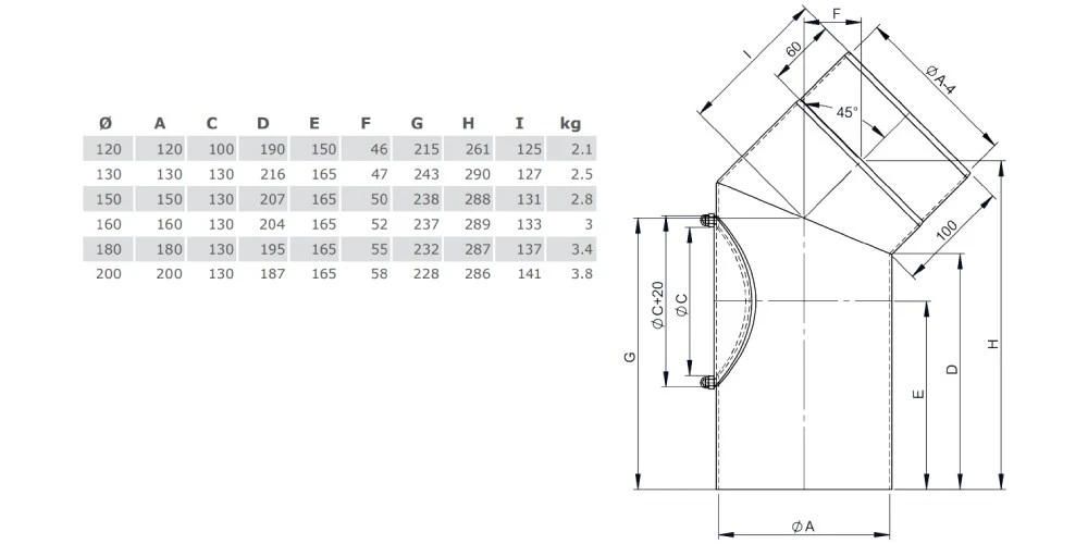 System Ferro-Lux: Kaminofenrohr – Winkel 45° mit Tür