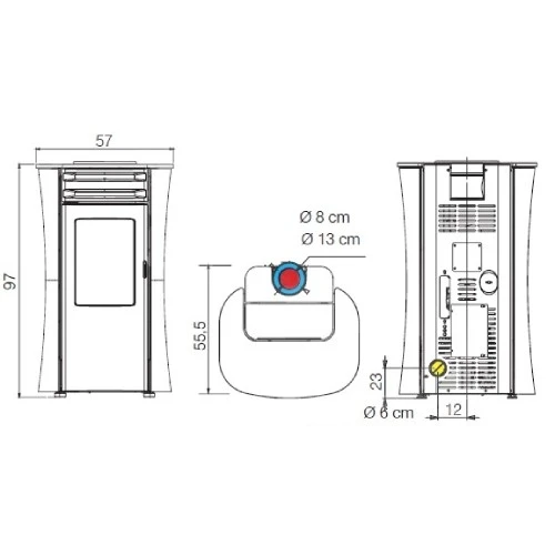 – mit einem Rauchauslass oben Ø 8/13 cm parallelen, Nut
