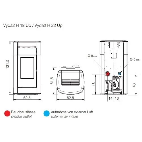 1 x Pelletofen Edilkamin Vyda2 H 18 Up 19,2 kW wasserführend