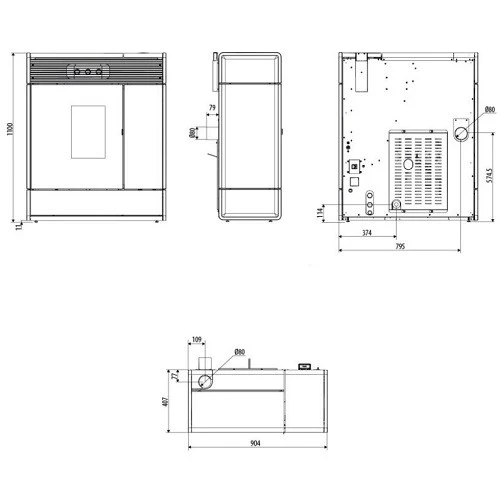 – Wöchentliche Ascheentleerung: Das hohe Fassungsvermögen des Aschekastens ermöglicht eine Woche Betrieb des Ofens ohne Entleerung (Verbrauch bei mittlerer Leistung von 8 Stunden pro Tag).