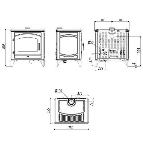 – Wöchentliche Ascheentleerung: Das hohe Fassungsvermögen des Aschekastens ermöglicht eine Woche Betrieb des Ofens ohne Entleerung (Verbrauch bei mittlerer Leistung von 8 Stunden pro Tag).