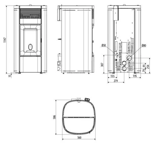 – Wöchentliche Ascheentleerung: Das hohe Fassungsvermögen des Aschekastens ermöglicht eine Woche Betrieb des Ofens ohne Entleerung (Verbrauch bei mittlerer Leistung von 8 Stunden pro Tag).