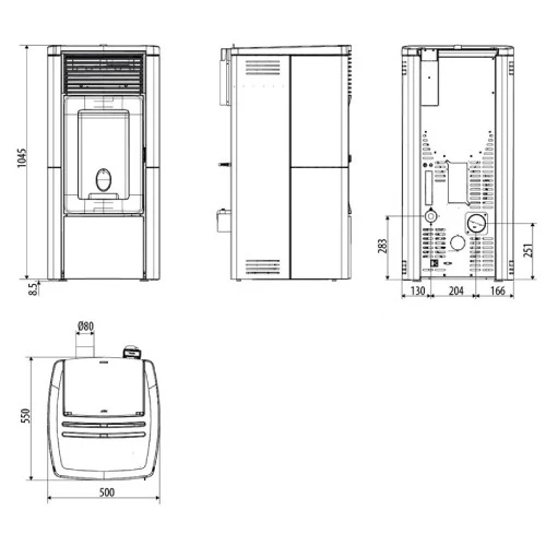 – Wöchentliche Ascheentleerung: Das hohe Fassungsvermögen des Aschekastens ermöglicht eine Woche Betrieb des Ofens ohne Entleerung (Verbrauch bei mittlerer Leistung von 8 Stunden pro Tag).