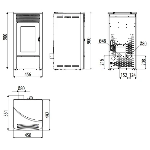 – Maestro, ein innovatives System für die Verbrennersteuerung. WI-FI und Bluetooth sind bereits integriert, daher lässt sich der Ofen per Smartphone sowohl von zu Hause als auch von unterwegs aus steuern. Dank optimaler Flamme wird weniger Asche erzeugt, daher bleibt die Glasscheibe länger sauber. Dies führt zu einem niedrigeren Verbrauch und reduziert die Emissionen.
