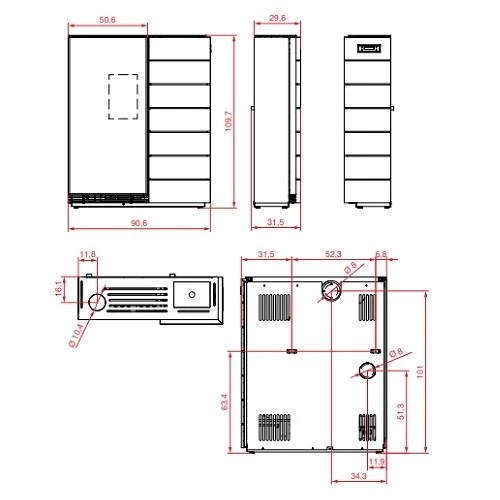 – Kann durch einen speziellen Bausatz mit oberem Rauchausgang installiert werden.
