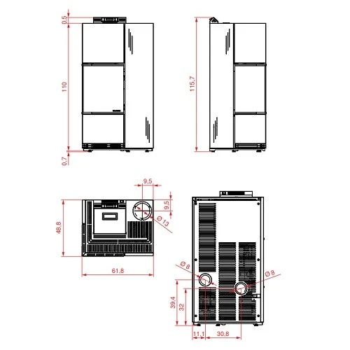 – Für hinteren oder seitlichen Rauchausgang ausgelegt, Installation mit oberem Rauchabzug dank Spezialbausatz möglich.