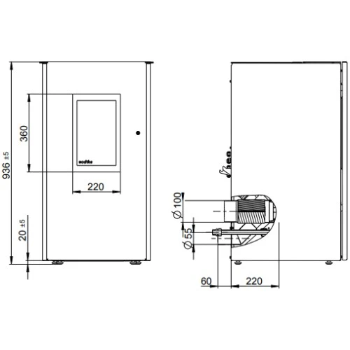 - 1 x Pelletofen Wodtke Pat water+ 8/10 kW wasserführend