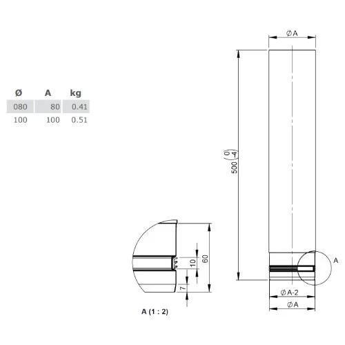 Einsatzzweck/Verwendung: Verbindungsleitung aus Edelstahl 1.4404 mit Muffe-Sicke Steckverbindung und innenliegender Dichtung für den Einsatzbereich im Wohn- und Sichtbereich für frei im Raum stehende Kaminöfen nach DIN EN 1856 – 2