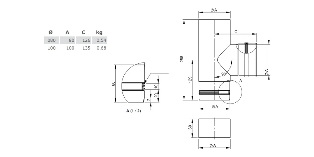 1 x T-Anschluss 90° mit abnehmbarer Kondensatschale, gussgrau lackiert für System Pellet-Line von Jeremias