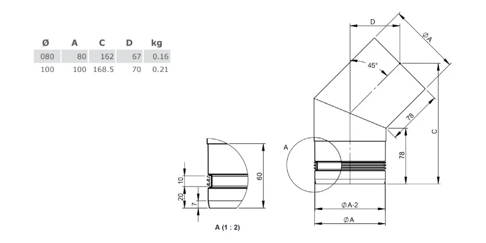 Einsatzzweck/Verwendung: Verbindungsleitung aus Edelstahl 1.4404 mit Muffe-Sicke Steckverbindung und innenliegender Dichtung für den Einsatzbereich im Wohn- und Sichtbereich für frei im Raum stehende Kaminöfen nach DIN EN 1856 – 2
