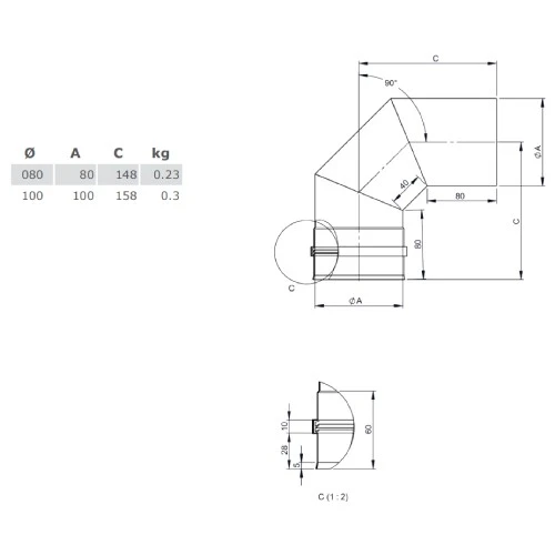 Einsatzzweck/Verwendung: Verbindungsleitung aus Edelstahl 1.4404 mit Muffe-Sicke Steckverbindung und innenliegender Dichtung für den Einsatzbereich im Wohn- und Sichtbereich für frei im Raum stehende Kaminöfen nach DIN EN 1856 – 2