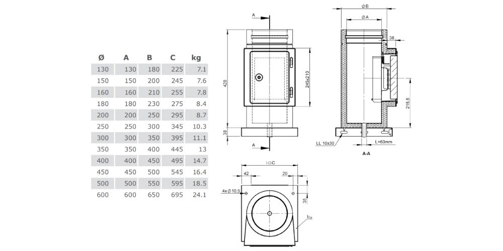 1x Reinigungselement mit integrierter Grundplatte für den Edelstahlschornstein Jeremias DW-ECO