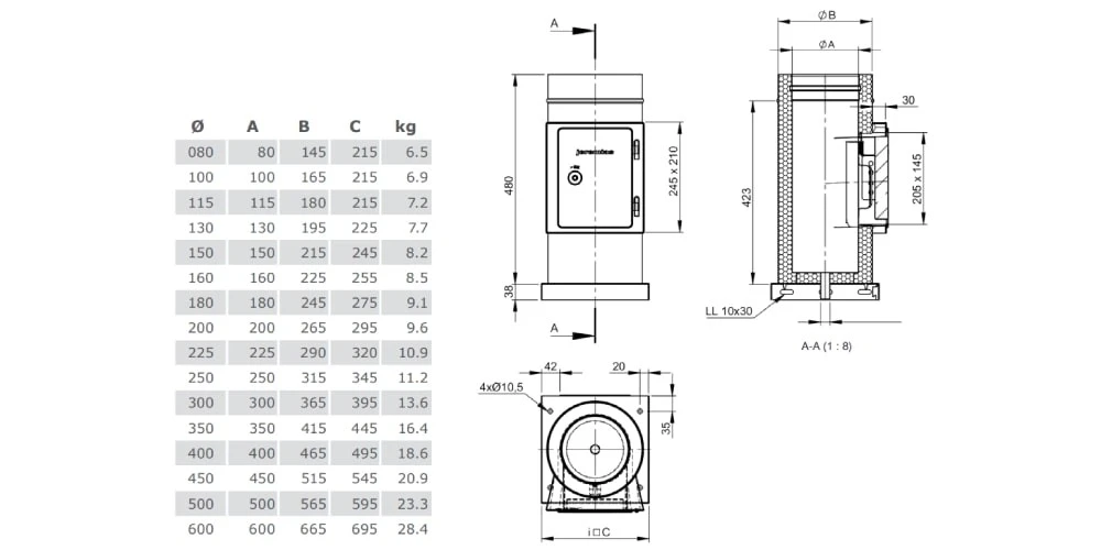 Für den Aufbau von Edelstahlschornsteinen bei einem geringen Platzbedarf. Wenn ein Schornstein auf engem Raum aufgebaut werden muss, dann kann dieses Bauteil den entscheidenden Vorteil bringen.