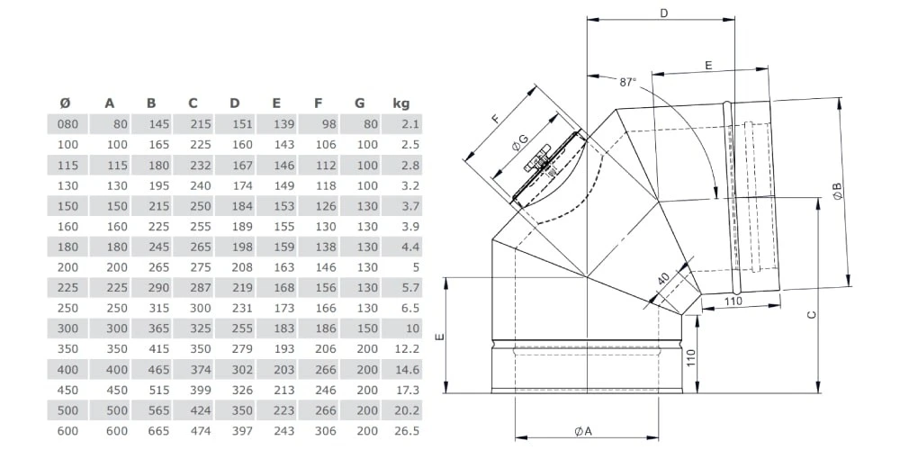 87° Reinigungswinkel für Ihren Edelstahlschornstein. Öl & Gas.
