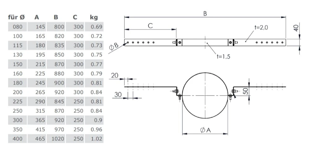 | Materialstärke (Schornstein) (mm) | 0,6 |
