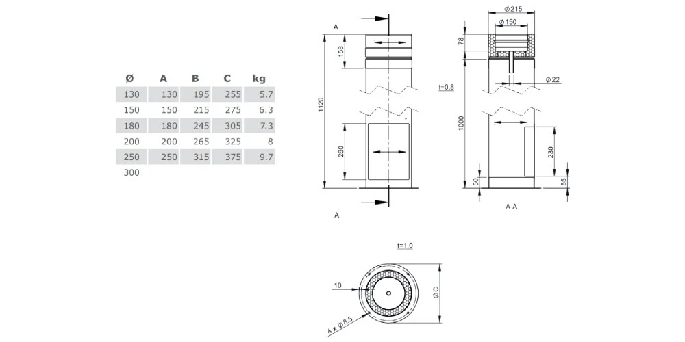 1x Teleskopstütze 610-1190 mm inklusive Teleskopkopf mit Kondensatablauf unten 1/2“ Nippel und Tür für Kondensatauffangbehälter, für System DW-VISION von Jeremias