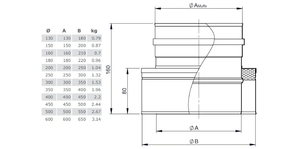 Übergang für unsere Schornsteine – Systeme. DW-ECO – EW durch Muffe.