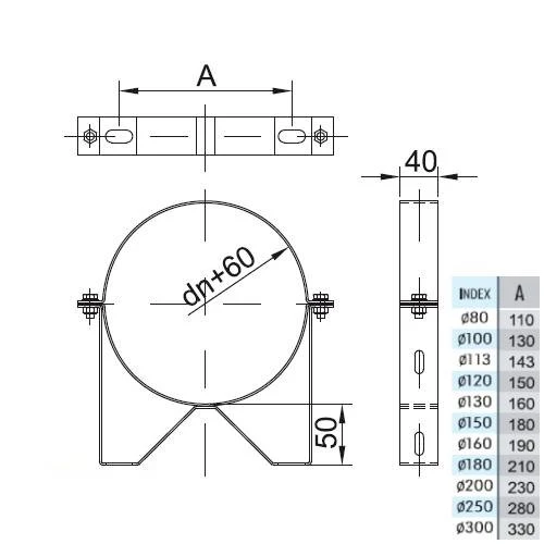 1 x Wand- und Deckenabstandshalter statisch, 50 mm – doppelwandig – Reuter DW-Systeme
