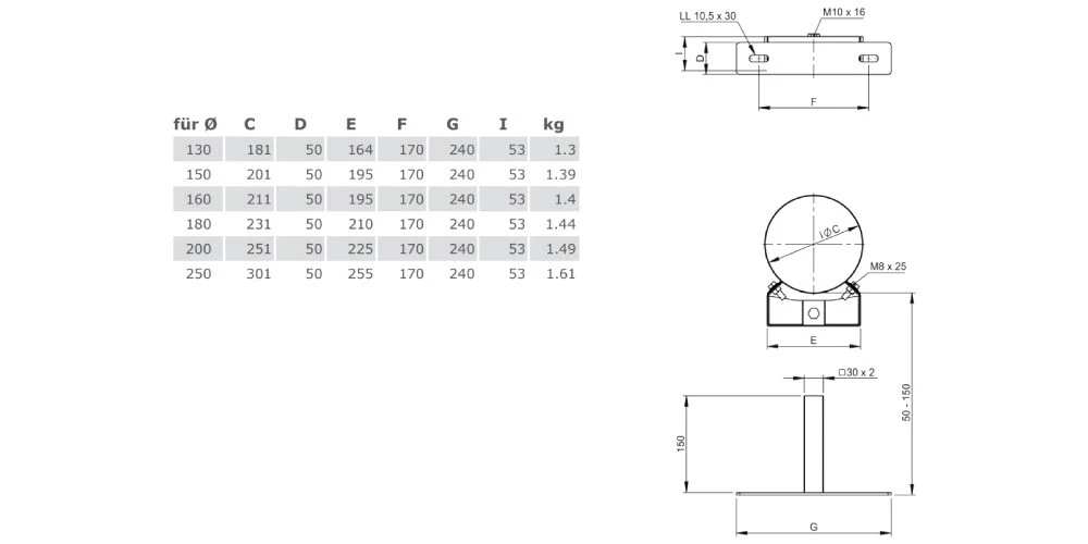 1x Wandabstandshalter verstellbar 50 – 150 mm für den Edelstahlschornstein DW-ECO von Jeremias