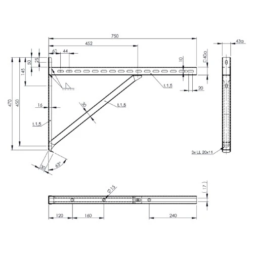 2x Wandstütze & Querträger Typ III 750 mm, für System DW-VISION von Jeremias