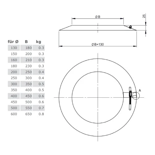 Der Wetterkragen verdeckt die Kernlochbohrung. Damit kann ein Edelstahlschornstein elegant angeschlossen werden.