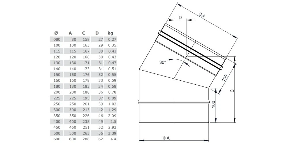 1x Winkel 30° starr für System EW-FU von Jeremias