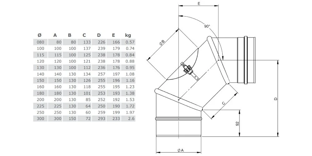 1x Winkel drehbar 0 – 90° mit Revisionsöffnung für System EW-FU von Jeremias
